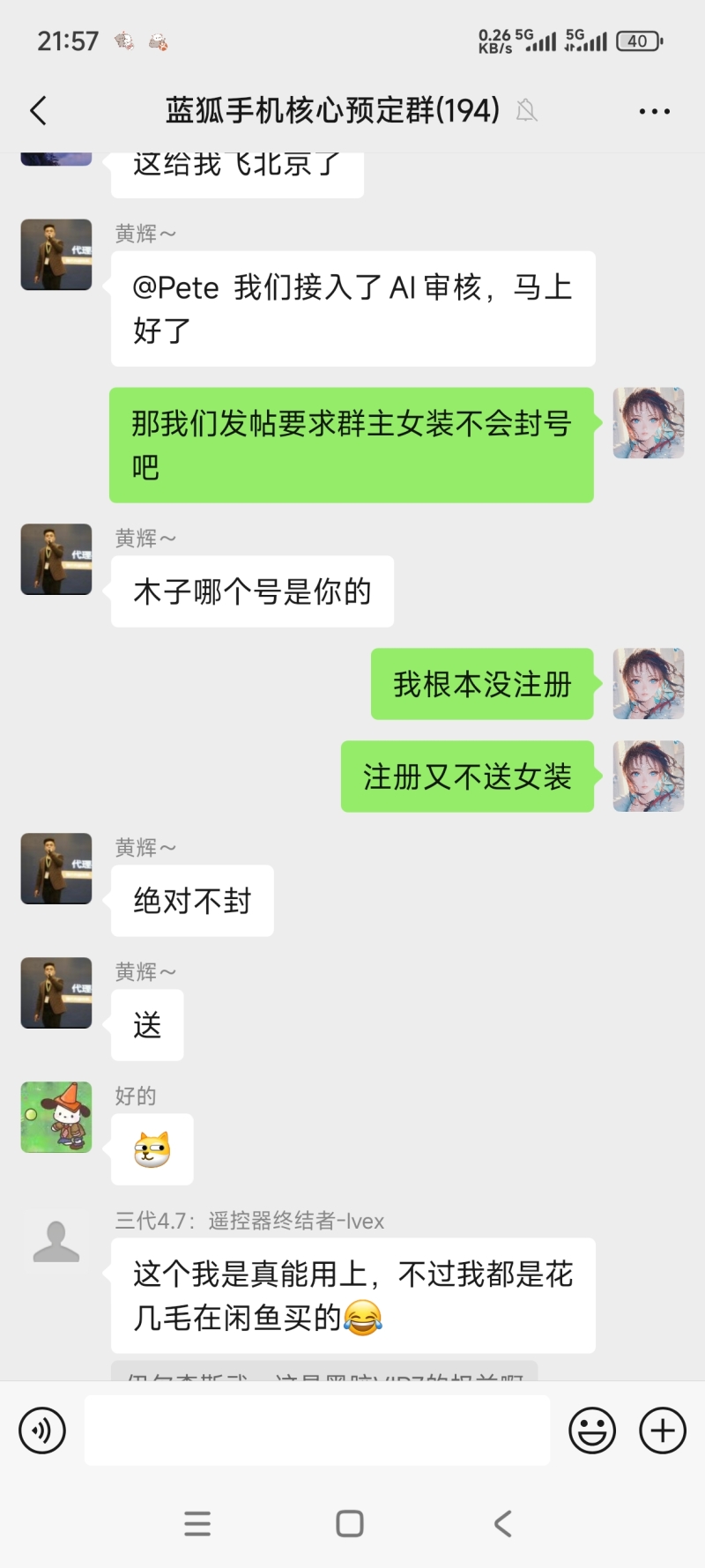 2025-07-03 新机资讯及展望 5 评论 9 喜欢 分享 木子 这个人很懒,还没有简介 查看TA的全部内容 +关注 蓝狐社区 去发现更多有趣内容 微信扫码打开蓝狐社区小程序 体验更多「蓝狐社区」新功能 评论 5 最爱小屏 2025-07-03 0 我找群主私发女装 微信用户_308 2025-07-03 0 你就是传说中的木子吗? 作者 木子 2025-07-03 0 让我听听怎么个传说 微信用户_308 2025-07-03 0 回复 木子: 就是帮老板画女装的那个人呀 杨正 2025-07-04 0 没有 我也来讲两句